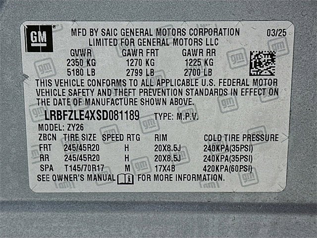 - Tires, P245/45R20 all-season